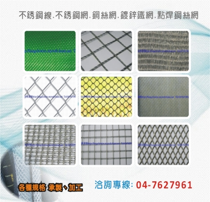 鐵網、白鐵網、菱形網、浪型網、建築用網、平織網、不銹鋼網、不銹鋼線、銅絲網、點銲網、鍍鋅鐵網、點焊鋼絲網、沖孔網、紗窗網、萬能網、遮光網、尼龍網、割刀刺網、客製廚具配件、鍍鋅鐵絲網、工業用網、黃紅銅絲網、各種規格金屬網、金屬網承製、金屬網加工、彰化金屬網、彰化不銹鋼網、彰化不銹鋼線、彰化菱形網、彰化平織網、彰化浪形網、彰化銅絲網、彰化鍍鋅鐵網、彰化點焊鋼絲網、彰化沖孔網、彰化紗窗網、彰化遮光網、彰化尼龍網、彰化工業用網